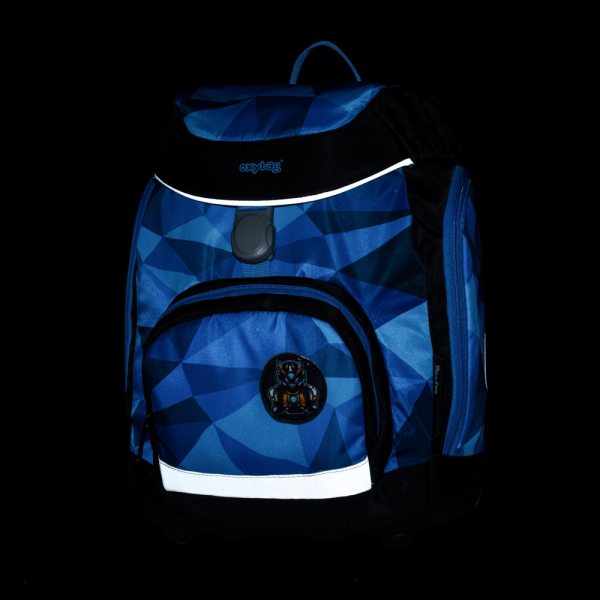 Výhodný set batohu, penálu, sáčku na cvičky a vyměnitelných odznaků, vhodný od 1. – 3. třídy. Anatomicky tvarovaná zádová stěna, polstrované ramenní popruhy a nastavitelný hrudní popruh zajistí záda jako v bavlnce každému školákovi. Pevné dno opatřené plastovými nožkami zabraňuje převrhnutí samostatně stojícího batohu. Vnitřní rozřazovač zajistí pořádek. Zapínání hlavní komory pomocí stahovací šňůrky je zajištěno magnetickým zapínáním Fidlock, které lze snadno otevřít jednou rukou. Na bocích jsou dvě kapsy na zip vhodné pro ukládání láhve na pití, v přední části batohu je menší kapsa na svačinu. Nechybí řada reflexních prvků. Díky vyměnitelným odznakům na suchý zip si může svoji aktovku vyzdobit každý školák. Batoh je vhodný pro děti vysoké od 121 cm Objem: 26 L Hmotnost: 950 g Nosnost: 10 kg Materiál 100% polyester Tři vyměnitelné odznaky na suchý zip na ozdobení batohu OXY Sherpy Rozměr: 390x 260×230 mm