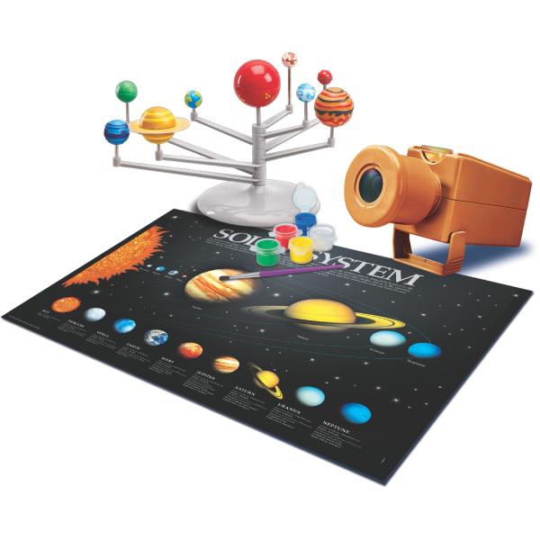 Postavte si a namalujte svůj vlastní model planetária Sluneční soustavy, postavte vesmírný projektor a užijte si velkolepou prezentaci s vesmírnou tematikou. Vyzdobte svou pokoj obrovským plakátem Sluneční soustavy a svítícími hvězdami. Tato vědecká sada je ideální pro začínající mladé astronomy.