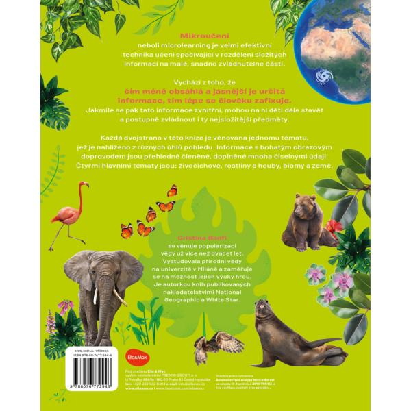 Osvojte si snadno a rychle všechno podstatné o přírodě! Tato kniha je založena na velmi efektivní technice mikroučení (microlearningu), spočívající v rozdělení složitých informací na malé, snadno zvládnutelné části. Vychází z toho, že čím méně obsáhlá a jasnější je určitá informace, tím lépe se člověku zafixuje. Jakmile se potom zvnitřní, mohou na ní děti dále stavět a postupně zvládnout i ty nejkomplexnější předměty. Každá dvojstrana v knížce je věnována jedné tématu. Informace s bohatým obrazovým doprovodem jsou přehledně členěny a doplněny infografikou.Čtyřmi hlavními tématy jsou: živočichové, rostliny a houby, biomy a krajiny.