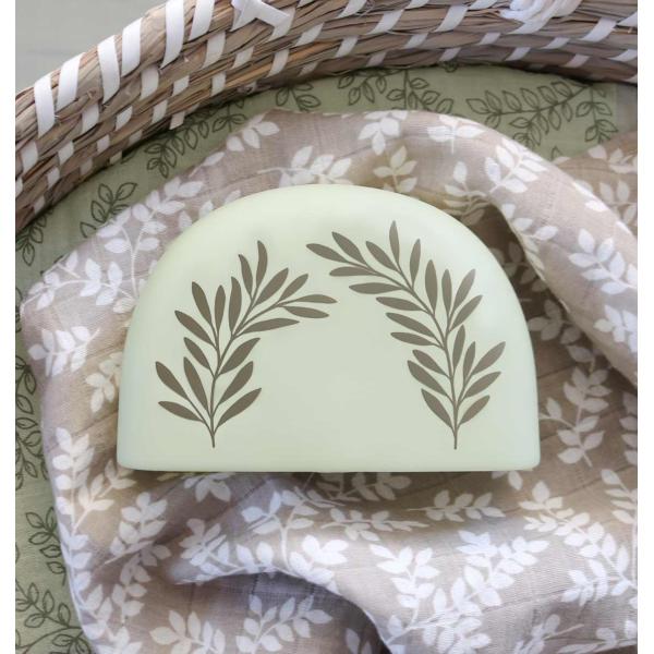 Malé noční světlo ve tvaru půlměsíce s listy. Jemné světlo přispívá k pocitu bezpečí ve tmě a umožňuje vašemu děťátku klidně usnout, je bezdrátové, takže jej lze snadno přenášet nebo vzít s sebou na cesty.