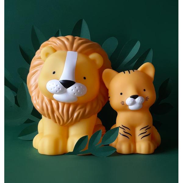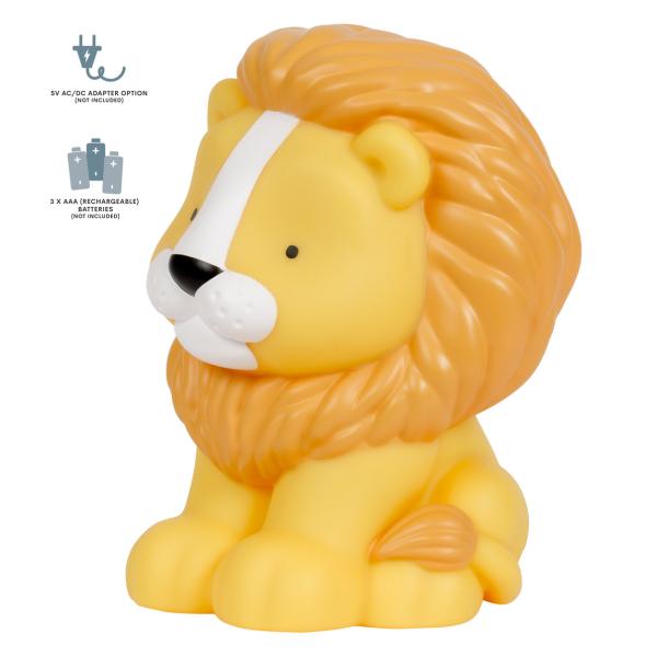 Hravé, bezdrátové noční světlo ve tvaru lva. Jemné světlo přispívá k pocitu bezpečí ve tmě a umožňuje vašemu miminku klidně usínat. Lampa se nezahřívá, je bezdrátová, a proto ji lze snadno přemisťovat nebo brát kamkoliv na cesty s sebou.