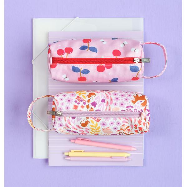 Růžové pouzdro na pastelky, fixy nebo psací potřeby s potiskem zvířat v květinové zahrádce je vyrobeno z udržitelného polyesteru. Je ideální na cesty, na nošení do školy nebo na kroužky. Pouzdro se zapíná na zip, je podšité a má pohodlnou rukojeť. Tento skvělý penál udrží všechny vaše pera a tužky bezpečně na jednom místě.