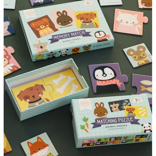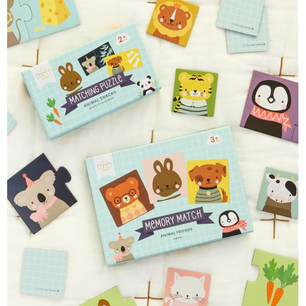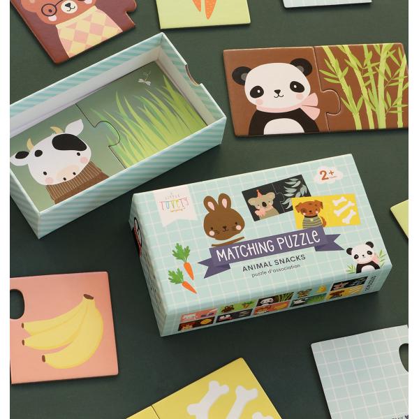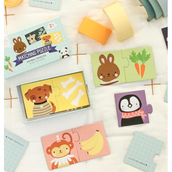 Puzzle pro děti od 2 let se skládá z 10 samostatných hádanek. Úkolem dětí je přiřadit ke správnému zvířeti jeho oblíbenou svačinu.