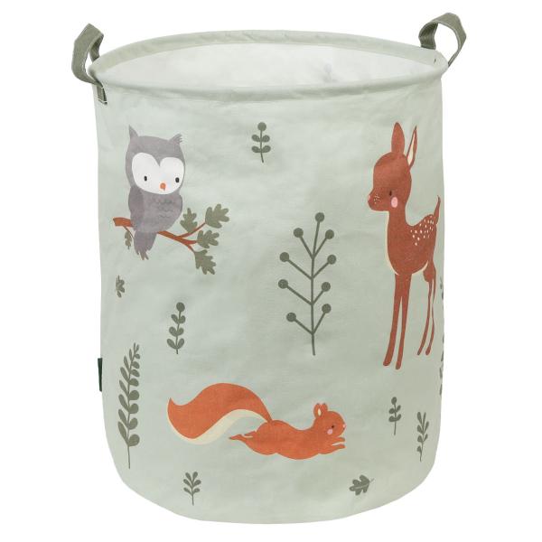 Prostorný úložný koš s potiskem lesních zvířátek je ideální na uložení hraček. Díky PE zátěru na vnitřní straně je možné koš využít i na sběr prádla. Košík lze snadno složit a odložit, když se nepoužívá, ale vypadá velmi hezky i jako dekorace v pokoji.