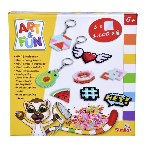 A&F Mini žehlicí korálky na výrobu přívěsku na klíče. Balení obsahuje 1600 korálků, 3 podložní destičky, žehlicí papír, 6 přívěsků. Vhodné pro děti od 6 let.