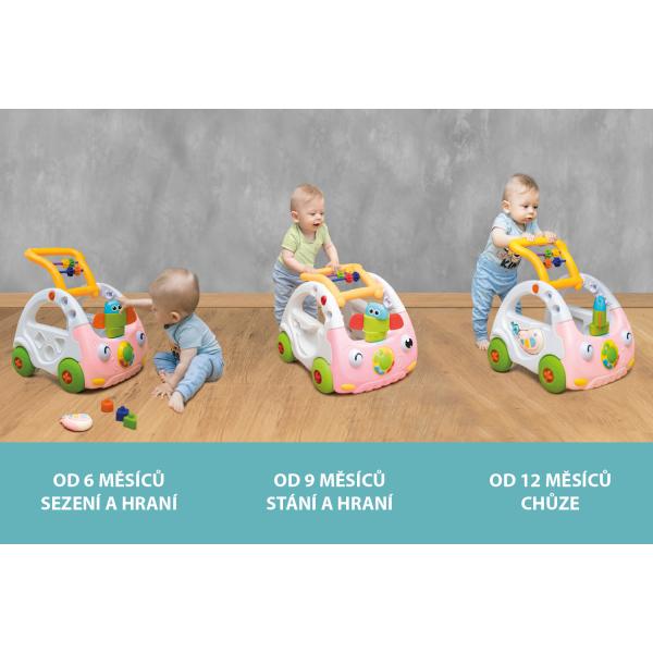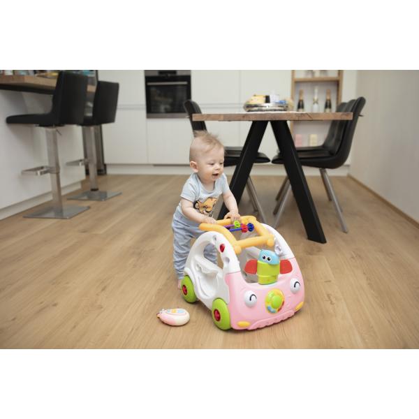 Roztomilé chodítko ve tvaru autíčka bezpečně provede dítě prvními krůčky. Od 6 měsíců slouží jako interaktivní hračka. Na boku chodítka jsou umístěny aktivity kostky, které rozvíjejí motoriku a fantazii. Dále je chodítko vybaveno skládačkou či počítadlem. Součástí je také interaktivní klíč s tlačítky, díky nimž autíčko vydává zvuky a světelné efekty.