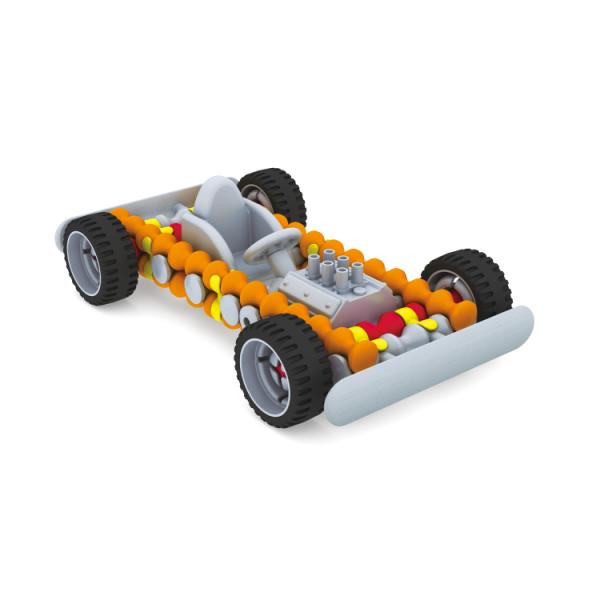 Ze stavebnice Playstix Clips si můžete snadno postavit více než 20 různorodých modelů, např. domeček, pyramidu nebo různé druhy vozidel s pevnými koly.