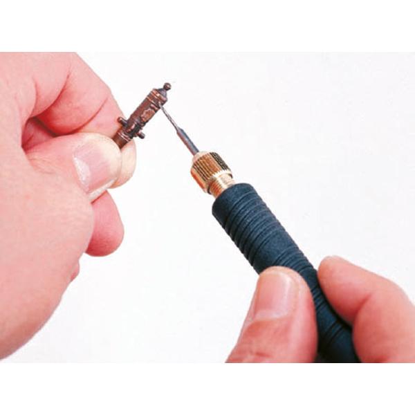Charakteristika:AMATI Action Cutter s příslušenstvím A – byla navržena pro drobné ruční práce. Nylonová rukojeť pojme čepele nožů, malé pilky a dokonce i ty nejmenší vrtáky, což z ní dělá nástroj, který potřebuje každý modelář. Sada dále obsahuje dva nože, pilový list, sklíčidlo se 4 vložkami a minisvěrák k připevnění na rukojeť.