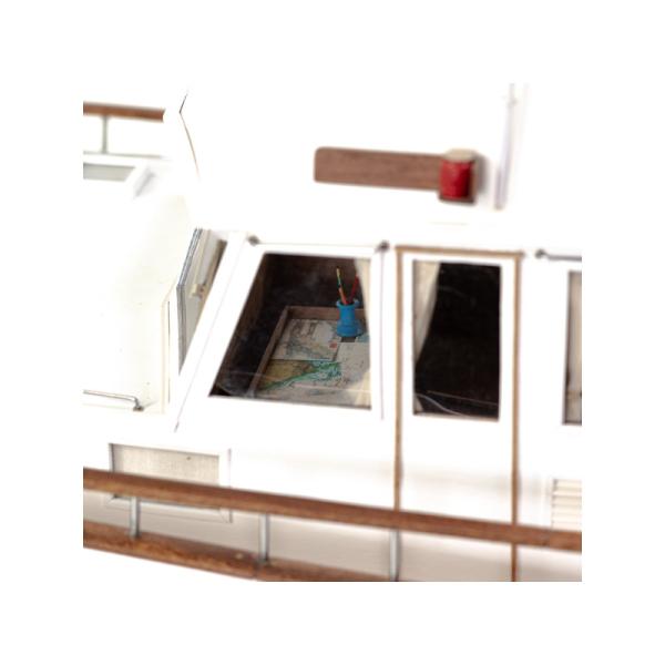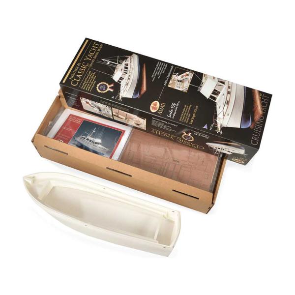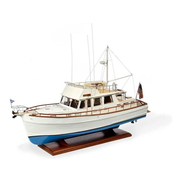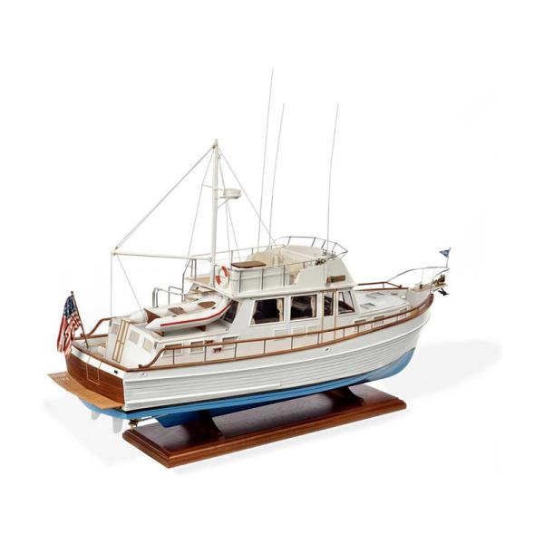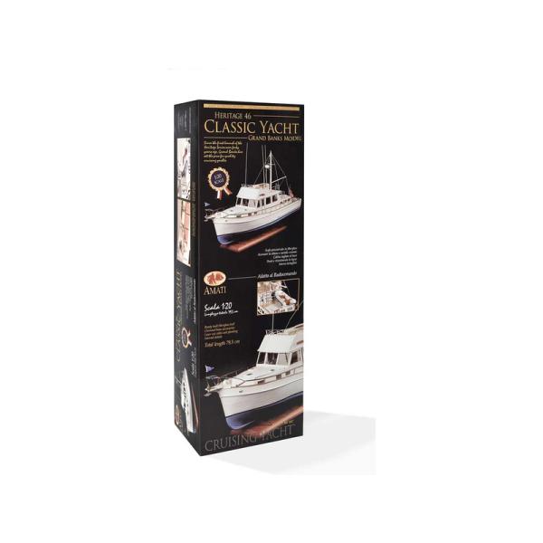Charakteristika:Stavebnice statické makety lodi, AMATI Grand Banks motorová jachta z roku 1967 v měřítku 1:20, kit. Přesný model klasické motorové jachty Grand Banks. V balení je trup z laminátu, laserem řezané dřevěné díly palub a nástaveb a mosazné a kovové díly. Model může být vybaven pohonem KR-25037 a dálkovým ovládáním.