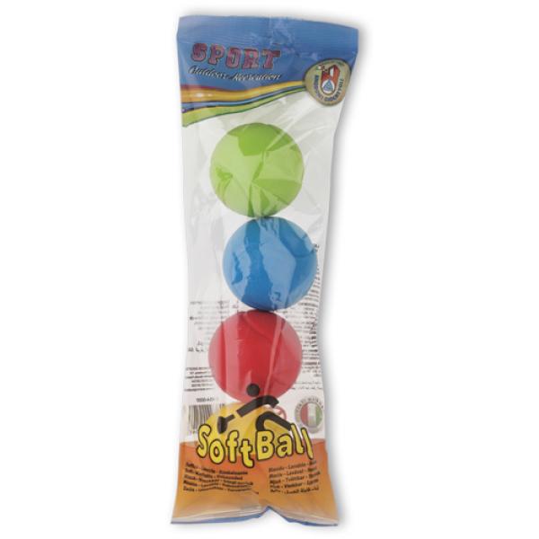 Sada 4 barevných měkkých míčků v plastovém sáčku k línému tenisu. Vyrobeno v Itálii. Průměr míčku 7 cm. Baleno v průhledném sáčku 13 x 37 cm. Váha: 0,08 kg.