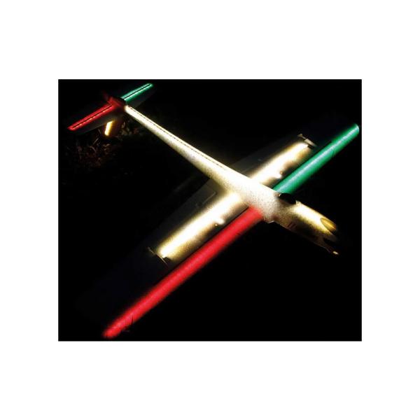 Arcus II Night lze volitelně dovybavit vytlakovými klapkami. Velká křidélka mají již vyznačemou dělicí čáru pro oddělení a také montážní body pro páky serv. Křídla jsou vybavena kabelovými kanály pro serva. Stačí tedy pouze dostupná sada pro dovybavení a další dvě serva cca 9 g, vhodné lepidlo a samozřejmě volný kanál na dálkovém ovladači a přijímači. Montáž je samozřejmě popsána v ilustrovaném stavebním návodu.Obsah balenia:V balení je stavebnice RC modelu větroně Arcus II Night PNP s nainstalovanými komponenty: motor, regulátor, serva kormidel, sklopná vrtule v kuželem 9×5, LED osvětlení, V-kabel, suchý zip vícejazyčný manuál v angličtině, němčině, francouzštině a návod v češtině.Odporúčame dokúpiť:Doporučujeme dokoupit 4+ kanálovou RC soupravu, LiPol baterii 1300mAh 3S a nabíječ.