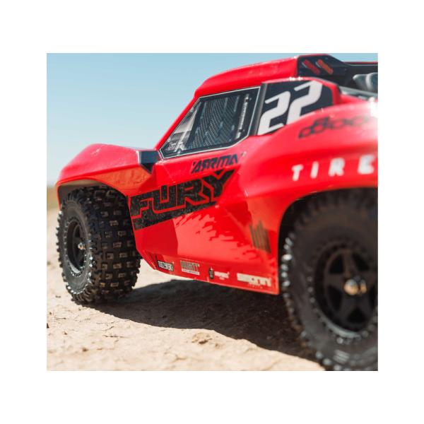 Fury má klasickou konstrukci vozů pro krátkou trať s koly krytými karoserií a bočními Nerf výztuhami, nemusíte se tak bát případných strkanic. Nízký sportovní podvozek umožňuje projíždět zatáčky vysokou rychlostí. Model je vhodný pro tvrdé povrchy, šotolinu a nízkou trávu. Kompozitní šasi odolá i tvrdý nárazům. Použité kovové převody jsou dostatečně odolné i pro případný upgrade na střídavý pohon. Maximální trakci zajišťují osvědčené pneumatiky dBoots Fortress.