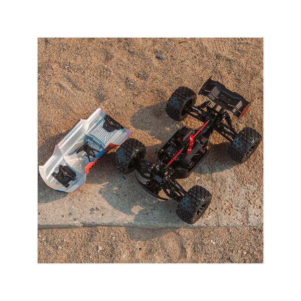 Charakteristika:Nová verze V6 legendárního RC modelu auta Arrma Kraton 6S BLX v měřítku 1:8, která posouvá svou impozantní rychlost a sílu na další úroveň a přidává klíčová vylepšení pro odolnost. Instalovány jsou vysoce pevnostní díly EXB (Extreme Bash), pro nespoutanou jízdu. Extra výkonný střídavý motor umožňuje rychlost model až 104 km/h. Nainstalována je kompletní elektronika s novým regulátorem Spektrum Firma V2, servo s kovovými převody a přijímač. Výborné jízdní vlastnosti na asfaltu i v terénu zaručuje nezávislé zavěšení s širokým rozchodem kol a vyladěný náhon 4×4 s diferenciály. Karoserie je bezsponková pro rychlou a snadnou montáž a demontáž a pro čistý vzhled bez klipů.