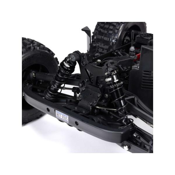 RC model obsahuje 16mm hliníkové tlumiče naplněné olejem, které absorbují i tvrdé dopady a zároveň udržují maximální kontakt s povrchem při jízdě, pro maximální kontrolu. Světlou výšku, respektive předpětí pružin lze jednoduše upravit pomocí matice.