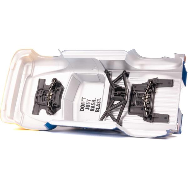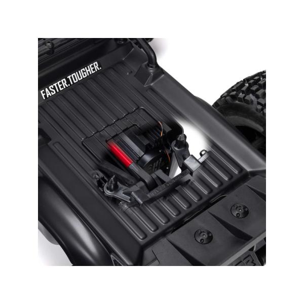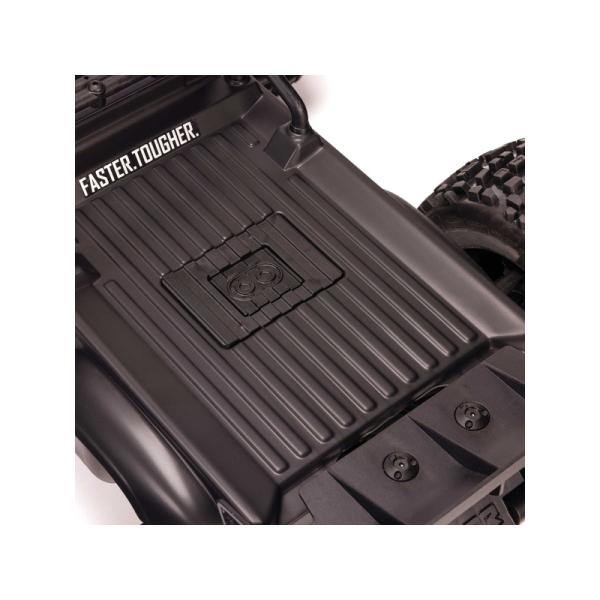 Podvozek, diferenciály, přední nárazník, kluzné desky podvozku a dokonce i uchycení křídla to všechno bylo vylepšeno a zesíleno pro větší pevnost. Nové boční ochranné kryty zamezují vnikání nečistot, dvoudílná vzpěra mezi věžemi přidává tuhost podvozku a zjednodušuje údržbu. Použitá elektronika je voděodolná* a nemusíte se bát jízdy v mokrém prostředí. Regulátor V2 má upravený firmware pro ještě vyšší výkon a rychlejší odezvu. Přesné a jisté řízení zajišťuje digitální servo s kovovými převody.