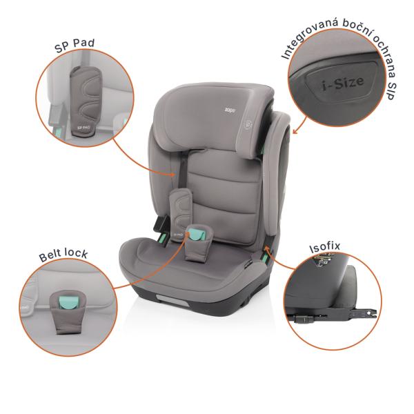 • Od 100 do 150 cm (3,5 až 12 let)• Systém SP PAD• Belt Lock• Integrovaná boční ochrana SIP• Norma ECE R129 i-Size• Nezávislé ISOFIX• Instalace pomocí ISOFIX• Instalace pomocí bezpečnostního pásu• Vodiče pásu• Indikátor správné instalace do vozidla• 10 poloh opěrky hlavy• 4 ergonomické polohy naklonění• Bočnice po celé délce• Prostorná a pohodlná autosedačka• Měkké potahy