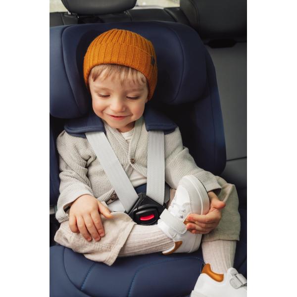 Velkou výhodou je, že při přechodu z 5-bodového pásu na 3-bodový bezpečnostní pás nebo při úpravě velikosti nemusíte odnímat žádnou část autosedačky, to z ní dělá dokonale flexibilní autosedačku, která se snadno přizpůsobí.