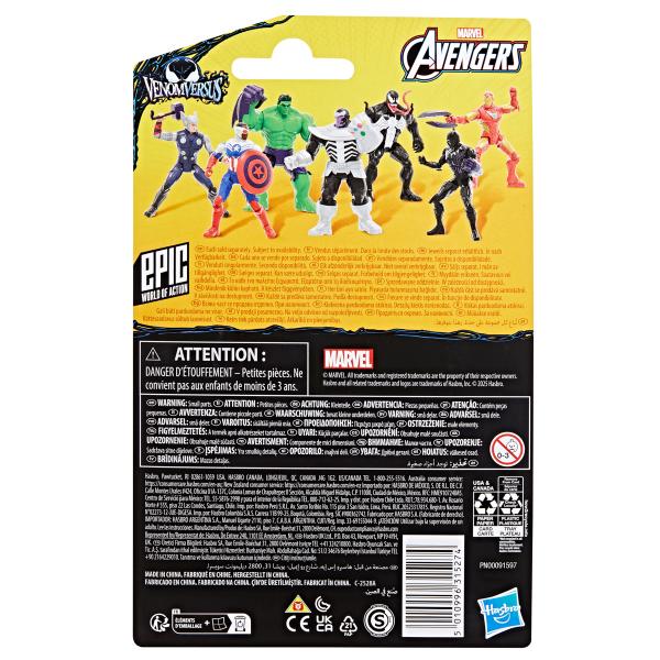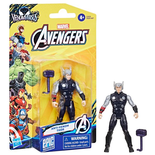 Děti si s těmito hračkami Avengers dokážou představit své oblíbené marvelovské superhrdiny, jak se vrhají do dobrodružství. Superhrdinové Marvelu využívají síly symbiontů k boji proti zlému mimozemšťanovi Venomovi a jeho hordě Venomizovaných zloduchů. Tato sběratelská akční figurka Thor – Marvel Anti-Venom, je součástí exkluzivní série Hasbro Epic World of Action a vyznačuje se klasickým designem a dekoracemi, stejně jako polohovatelnými končetinami. Součástí je také Venomized kladivo pro dobrodružství poháněné symbiony. Tato 10 cm vysoká figurka s prvotřídním detailním designem a 9 kloubovými body bude perfektním dárkem pro děti nebo doplňkem jakékoli sbírky figurek superhrdinů. Vyrobeno z kvalitního plastu. Obsah balení: Figurka a doplněk. Balené v blistru. Rozměry balení: 20,3 x 12,7 x 3,2 cm. Věk: 4+