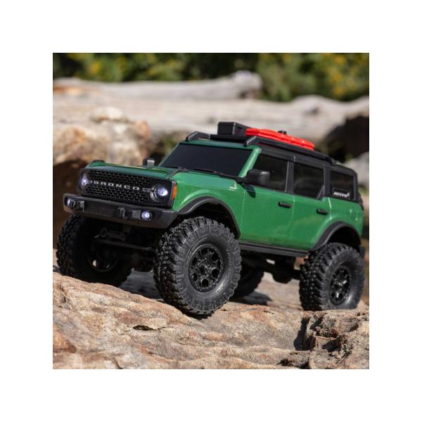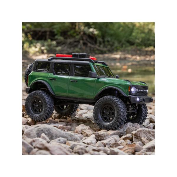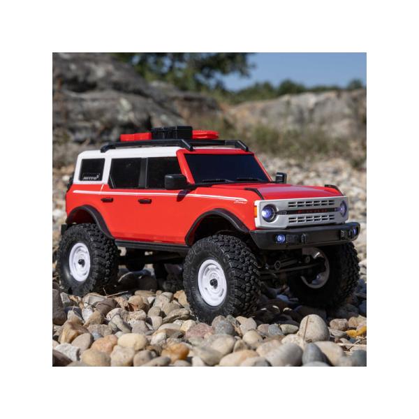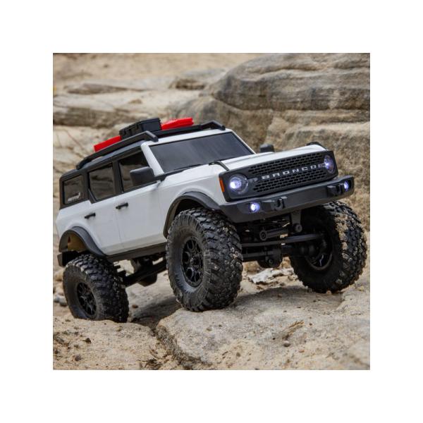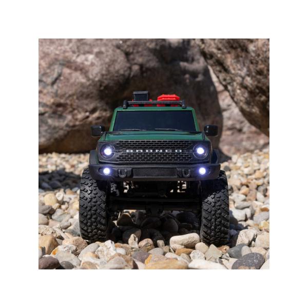 Model je pro jízdu vybaven ocelovými C nosníky podvozku, víceprvkovým zavěšením s ocelovými táhly, přímými pevnými nápravami a olejovými tlumiči. Trvalý pohon všech čtyř kol pohání stejnosměrný motor přes převodovku, středové hřídele a šnekové převody v rozvodovkách. Licencovaná karoserie Bronco 2021 z odolného ABS materiálu je doplněna o množství detailů jako jsou střešní nosič s příslušenstvím, přední maska, zrcátka, rezervní kolo a v neposlední řadě přední LED osvětlení pro úžasné večerní projížďky. Licencované jsou rovněž terénní pneumatiky Nitto Trail Grappler M/T.