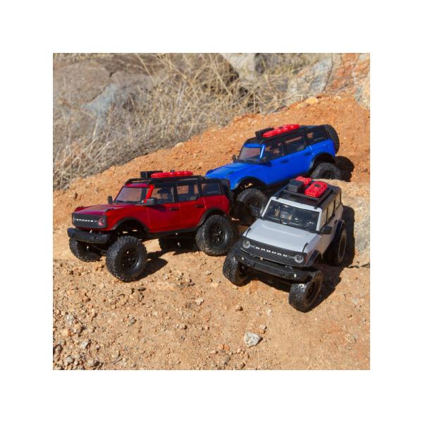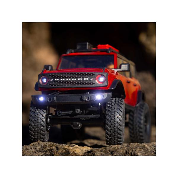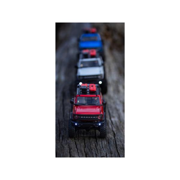 Charakteristika:RC model auta na dálkové ovládání v měřítku 1:24 Axial SCX24 s licencovanou karosérií Ford Bronco 2021 a licencovaných pneumatikách Nitto Trail Grappler s disky Factory Ford Wildtrak. Model s pohonem 4×4 je sestaven a připraven k jízdě, vše potřebné je v balení. RC souprava 2,4GHz, motor Dynamite® 88T, LiPol baterie Dynamite 350mAh 7.4V s USB nabíječem. Díky použití moderního LiPo akumulátoru je doba jízdy přes 40 minut!