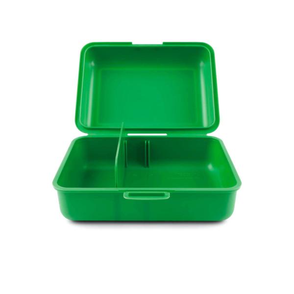 Plastový box na svačinu s uzavíráním na jednu zámek, obsahuje dělící přepážku.