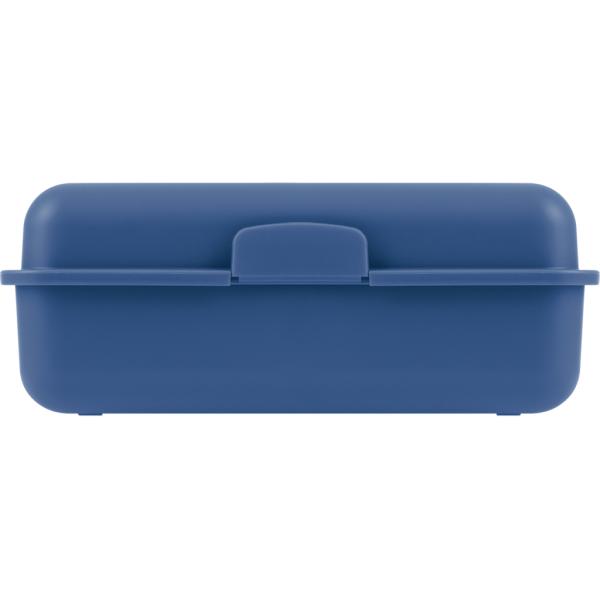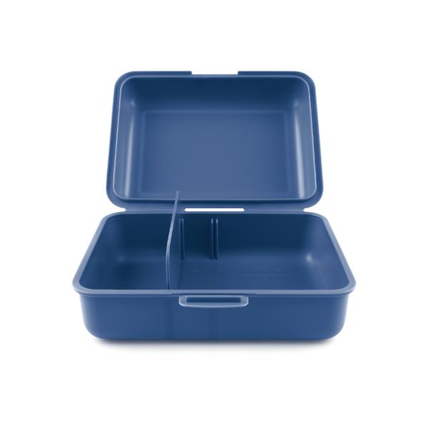 Plastová krabička na svačinu s uzavíráním na jeden zámek obsahuje dělicí přepážku