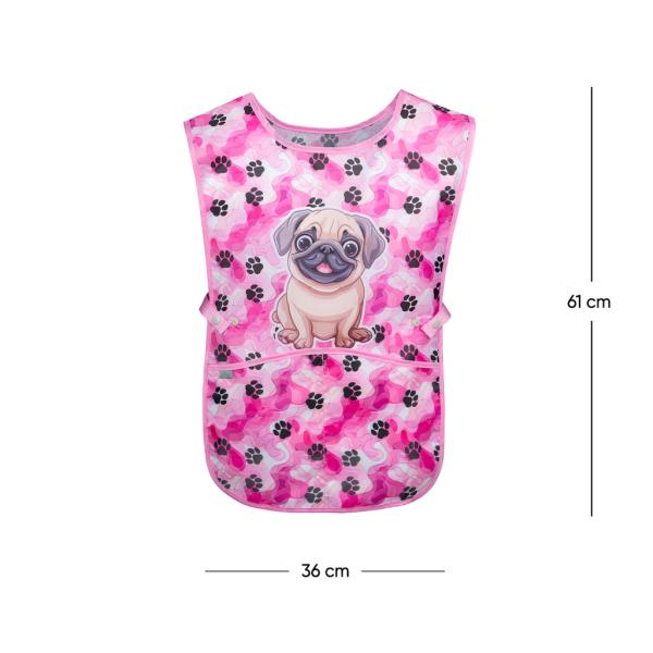 • Zástěra na výtvarnou výchovu, pracovní činnosti a jiné kroužky. • V dolní části zástěry jsou dvě kapsy. • Vyrobeno z omyvatelného materiálu.