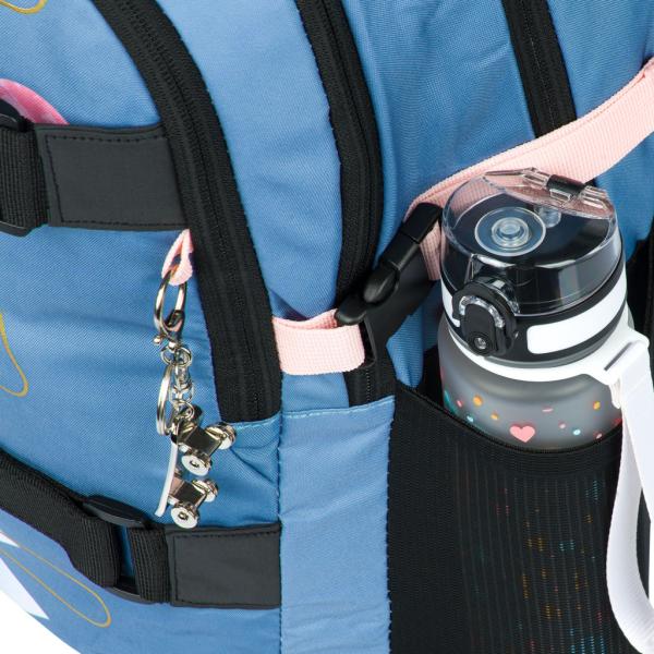• Batoh má jako bonus kovový přívěsek ve tvaru skateboardu.