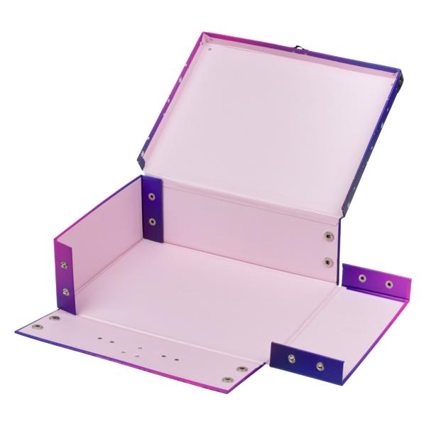 • Praktický skládací kufřík na výtvarnou výchovu, hračky nebo drobnosti. • Díky důmyslnému zacvakávacímu systému lze kufřík s kovovými rohy snadno složit a rozložit během několika sekund. • Klasické zapínání na přezku a kovová rukojeť zajišťují jednoduché a pohodlné přenášení. • Vyrobeno z pevného laminovaného papíru.