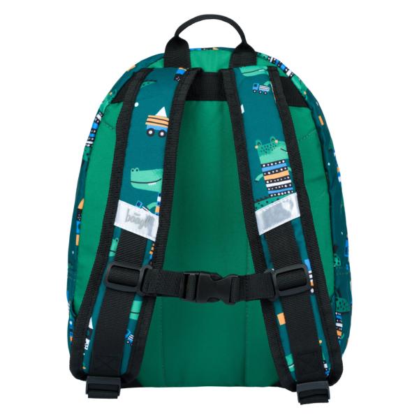 Školkarský batoh Krokodýl od BAAGL – pevný, voděodolný a s reflexními prvky. Pefně vyztužený a nastavitelný. Ideální pro předškoláky.