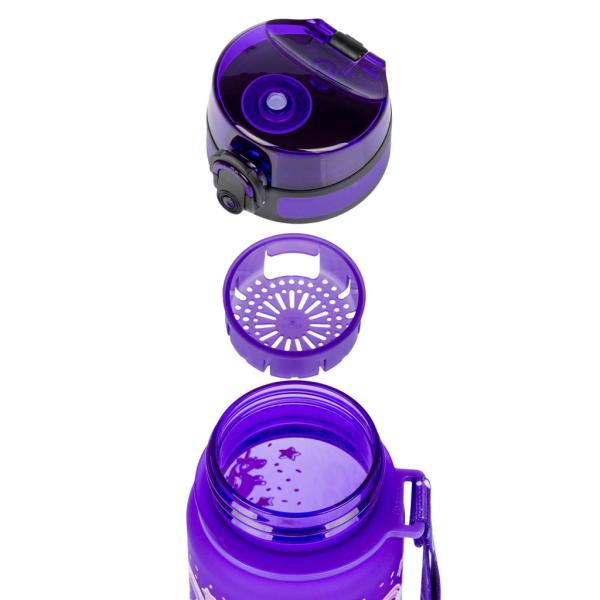 Uzamykatelné víčko nepropustí ani kapku nápoje a zajišťuje jednoduchou a intuitivní manipulaci. Součástí láhve je sítko, díky kterému můžete láhev použít i na limonády s ovocem nebo čaj (materiál je vhodný i na horké nápoje). K láhvi je připevněný řemínek, který umožňuje pohodlné nošení v ruce.