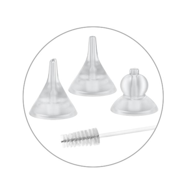 3 Měkké silikonové nástavce – Ultra měkké 3 silikonové nástavce, které lze přizpůsobit typu sekretů a věku miminka. Obsahuje také přídavnou čisticí štětku. Zaručeně hygienické a přizpůsobené potřebám těch nejmenších.