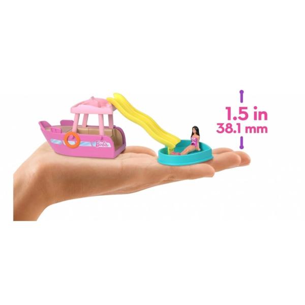 Vydejte se do vln Mini BarbieLandu s lodí snů – zmenšenou na miniaturní velikost a s překvapením v podobě možnosti změny barvy!