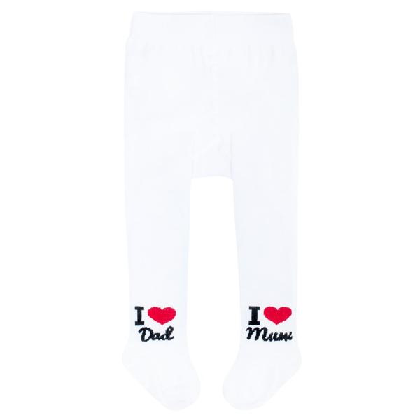 Punčocháčky mají roztomilý obrázek na zadečku s nápisem I Love Mum and Dad. Na jedné nožičce je nápis I Love Mum a na druhé I Love Dad. Jsou vyrobeny z kvalitního materiálu, který nepouští barvu a drží tvar. Punčocháčky jsou velmi praktické a padnou všem malým dětem.
