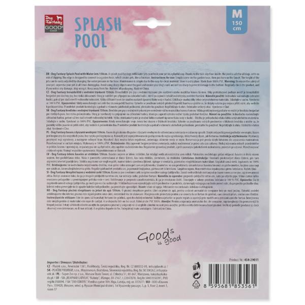 Robustní podložka s malými otvory, ze kterých stříká voda. Možnost připojení k vodní hadici pomocí přiloženého konektoru. Zábavný a bezpečný způsob, jak ochladit své mazlíčky v horkých letních dnech!Velikost: průměr 150 cm.Návod na montáž: Roztáhněte bazének na rovné ploše, která nebude mít ostré hrany, ideálně na trávě (bez klacků a kamenů) nebo na hladké dlažbě.Při hrubé dlažbě se spárami, např. zámkové, doporučujeme podložit bazének textilií určenou pod bazény.