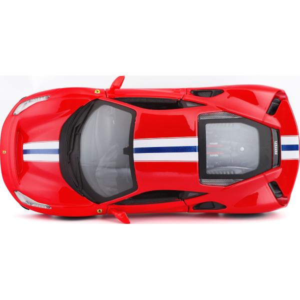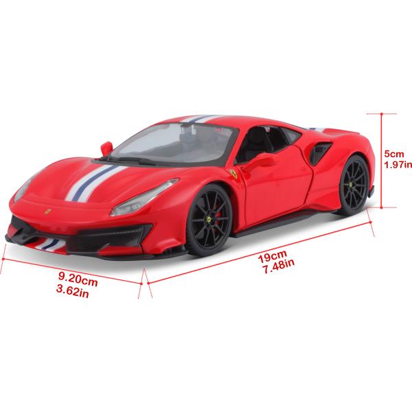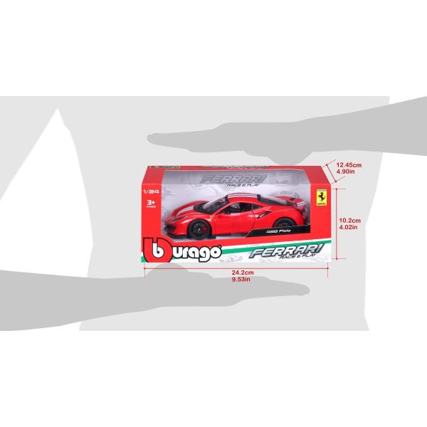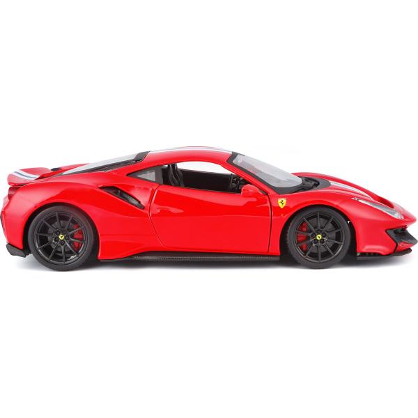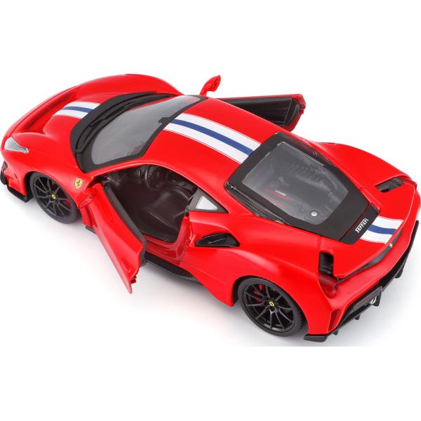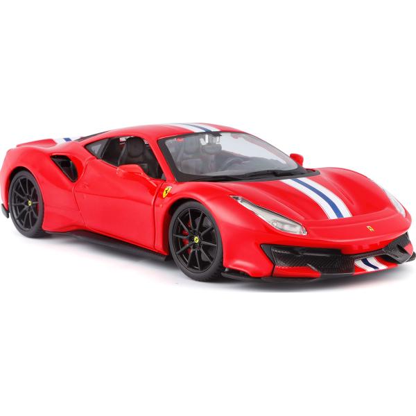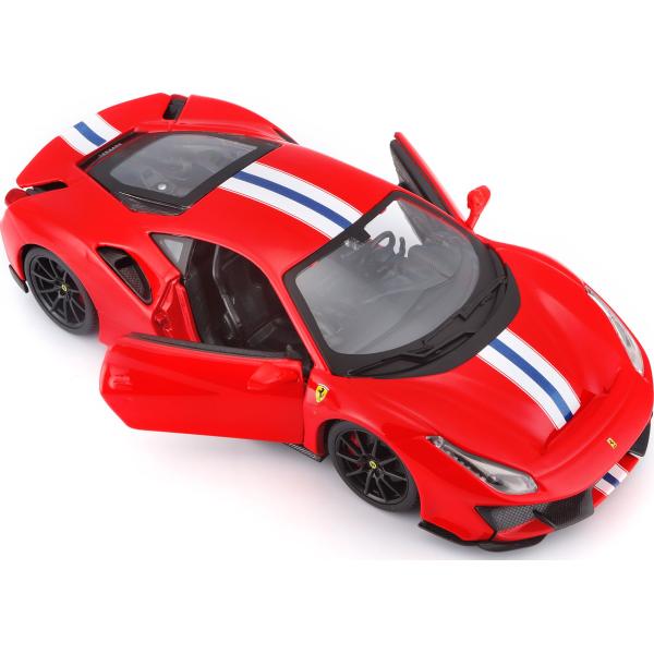 Bburago 1:24 Ferrari 488 Pista (red) Model auta v měřítku 1:24 vyrobený z kovových a plastových dílů. Otevírací dveře, natáčecí kolečka. Od roku 2018 výroba bez podstavce. věk 5+