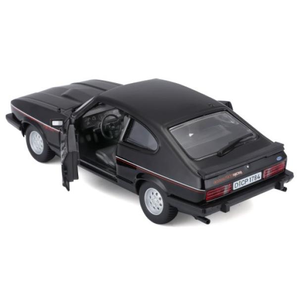 Stylizované autíčko Bburago 1:24 Plus Ford Capri 1982 light Černá je ideálním dárkem pro každého milovníka historických vozidel. Díky své přesnosti a detailům vás přenese do světa klasických aut.