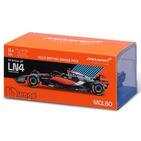Bburago 1:43 RACE Formula F1 – McLaren F1 Team MCL60 (2023) #4 (Lando Norris) – s jezdcem a dekorativní krabicí