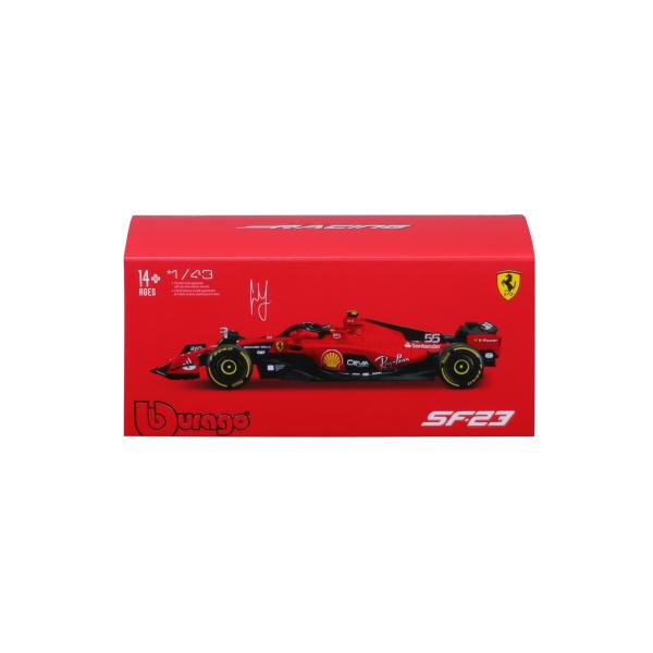 Bburago 1:43 Formula F1 Ferrari Scuderia SF-23 (2023) č.55 Carlos Sainz – s řidičem pochází z dílny výrobce Bburago