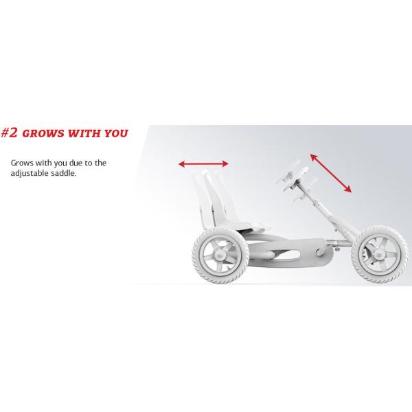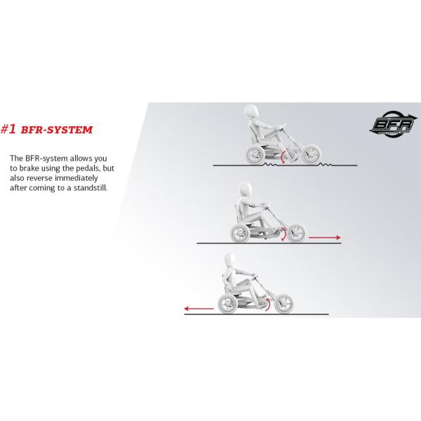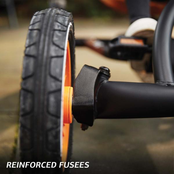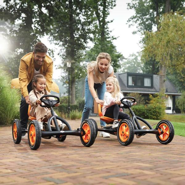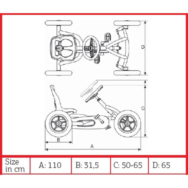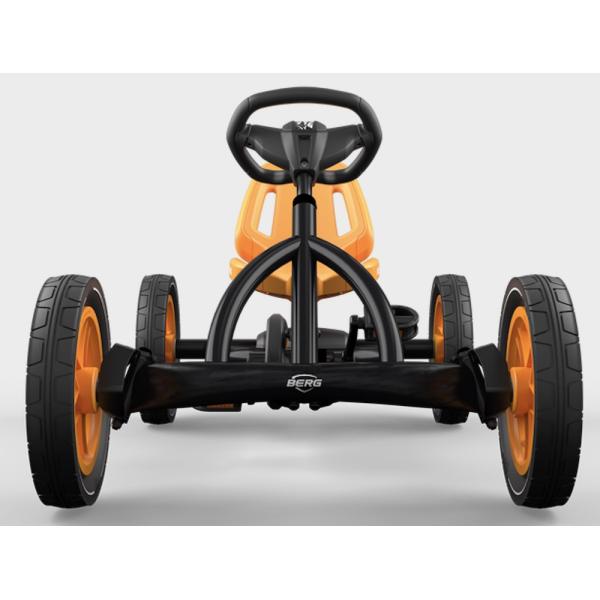 Pneumatiky pro volný čas s dlouhou životností vyrobené z hrubé pryže (s nízkým opotřebením) Speciální zesílená deska kloubu řízení a zesílené tyče řízení s optimalizovaným bodem otáčení Pojezd vpřed a vzad díky náboji BFR Optimální bezpečnost díky automatická dojezdová brzda (BFR) Optimální bezpečnost díky volnoběžnému převodu (BFR), který zajišťuje, že se pedály během jízdy nepohybují, pokud nejsou stlačené Vhodné pro různé věkové skupiny díky nastavitelnému sedadlu a volant Pevný rám (bezúdržbový) díky výkyvné ose Bezúdržbové komfortní 12″ pneumatiky s kuličkovými ložisky Díky kompaktnímu designu lze BERG Buddy PRO složit (ve vzpřímené poloze), aby se ušetřilo místo Díky nastavitelnému sedadlu a volantu Buddy PRO snadno roste s vámi. Junior Series je proto dokonalým úvodem do světa motokár. Tento vůz je vhodný pro fanoušky čtyřkolek ve věku 3 – 8 let
