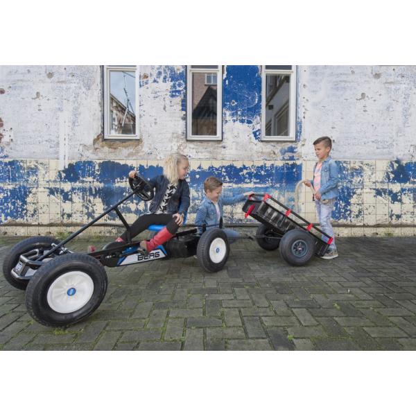 Díky tomuto impozantnímu přívěsu si můžete snadno vzít další zátěž s sebou. S tímto přívěsem BERG, vynikající kvality, zvládnete jakýkoli úkol a zažijete jakékoli dobrodružství, ať už pojedete s přáteli na piknik nebo bude třeba odvézt staré noviny. Přívěs je vhodný pro všechna velká BERG šlapadla. Není vhodný pro BERG Buddy nebo BERG Rally. BERG představuje kvalitu a bezpečnost! Produkty BERG jsou robustní, s garantovanou kvalitou, naprosto bezpečné a značně testované. Rozměry Délka 135 cm Šířka 80 cm Výška 45 cm Hmotnost: 16 kg