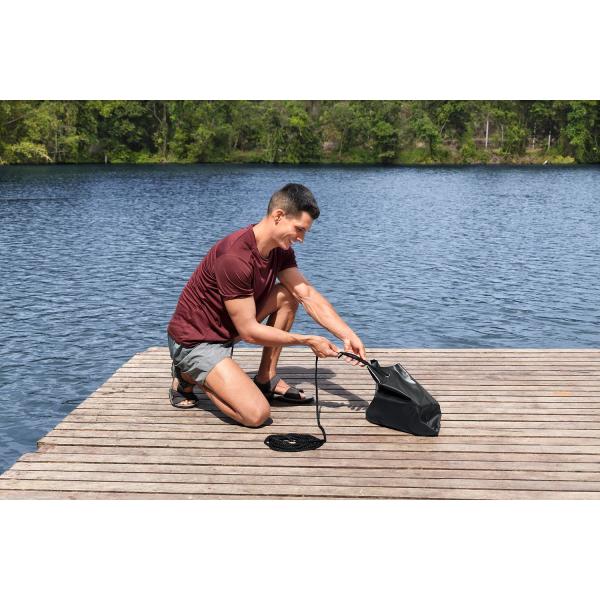 Rychloupínací ventily zajišťují pohodlné nafouknutí i vyfouknutí. Součástí balení je opravná záplata pro rychlé řešení případných menších poškození.