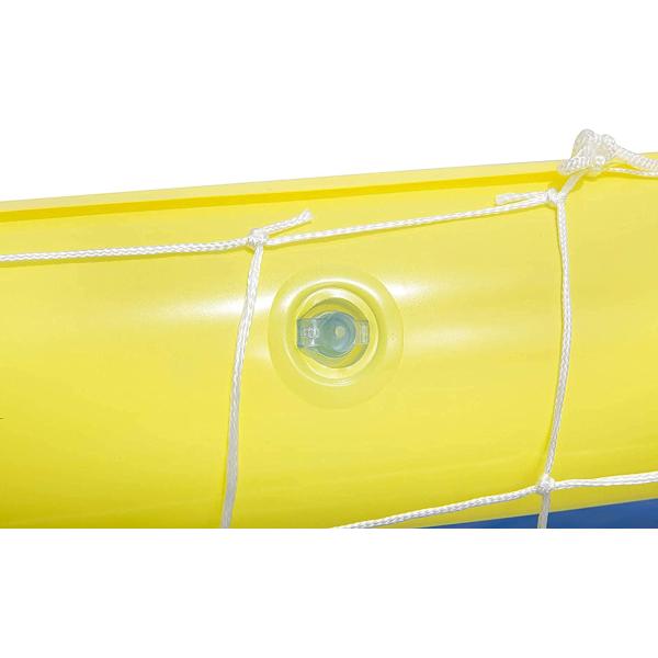 Se sadou na vodní pólo Bestway se děti mohou zabavit v bazénu nebo se naučit hrát vodní pólo. Tato souprava je určena pro použití ve vodě, ale lze ji použít i jako volejbalovou síť na souši. Souprava se snadno sestavuje a poskytuje hodiny aktivního a zábavného soutěžení! Nespornou výhodou tohoto herního setu je, že podporuje fyzickou aktivitu. Specifikace: Barvy: jasné neonové barvy. Souprava určená k použití ve vodě. Podporuje fyzickou aktivitu. Snadno se nafukuje, vyfukuje a skladuje. Obsah: 1 nafukovací rám, 1 míč, nylonová síť. Materiál: PVC. Rozměry výrobku: Š: 142 cm. Délka: 76 cm Věk dítěte: 3+