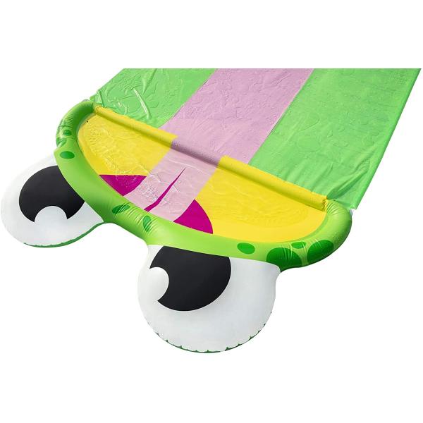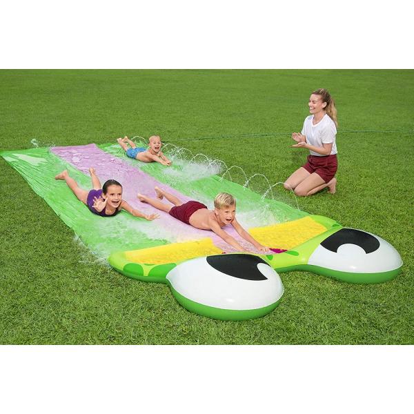 Vodní zahradní skluzavka Bestway Friendly Frog Slide 488 cm je ideálna pro děti od 3 let! Skluzavka poskytne dětem pohyb a skvělou zábavu. Skladá se z tří dráh s délkou 488 cm a vodních postřiků, které zajišťují dostatečný skluz a zároveň ochlazují tělo. Na konci tratě je umístěný nafukovací golier, který dětem zajistí bezpečnost a měkké přistání.