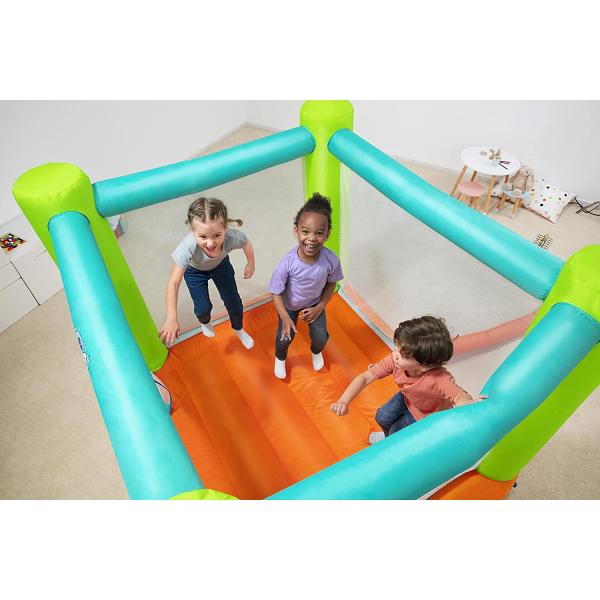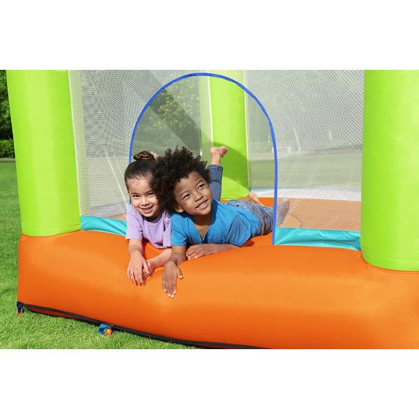 Posilovna na vašem vlastním dvoře – s H2OGO! Skákací hrad Jump and Soar to zjednodušuje a zvládnete to za chvíli! Přiložený foukač plně nafoukne skákací hrad za méně než 2 minuty, což rodičům ušetří spoustu času a námahy! U tohoto snadno sestavitelného skákacího hradu je navíc velmi důležitý aspekt bezpečnosti. Síťové stěny výrazně usnadňují rodičovský dohled. S jediným otvorem pro nastupování a vystupování máte vždy pod kontrolou, kdo nastoupí a vystoupí ze skákacího hradu. Tento skákací hrad je vhodný pro vnitřní i venkovní použití a nabízí dětem místo pro hraní a objevování. Zároveň podporuje ty nejmenší v rozvíjení hrubé motoriky. Skákací hrad Jump and Soar™ je proto ideální hračkou! Celých 365 dní čisté zábavy!