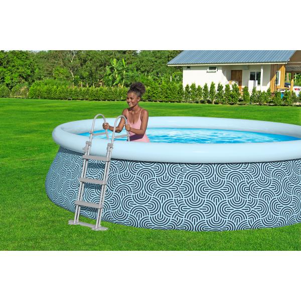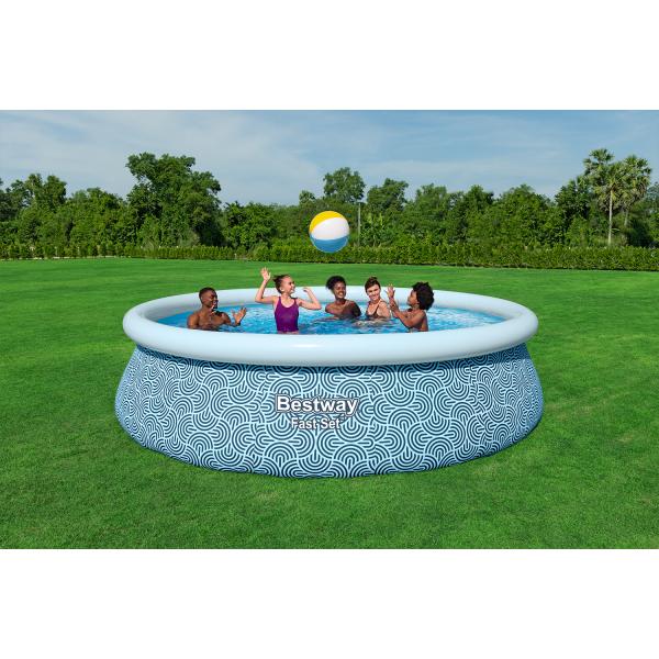 Bazén Bestway® Fast Set™ je samonosný a vyžaduje jen naplnění na rovném povrchu s nafouknutým vzduchovým prstencem. Integrovaný vypouštěcí ventil s adaptérem na zahradní hadici usnadňuje jeho vyprazdňování. Vzduchový prstenec je vybaven bezpečnostním ventilem, který poskytuje dodatečnou ochranu a ještě více zjednodušuje montáž. Díky možnostem jednoduché přepravy a skladování je bazén mimořádně uživatelsky přívětivý.