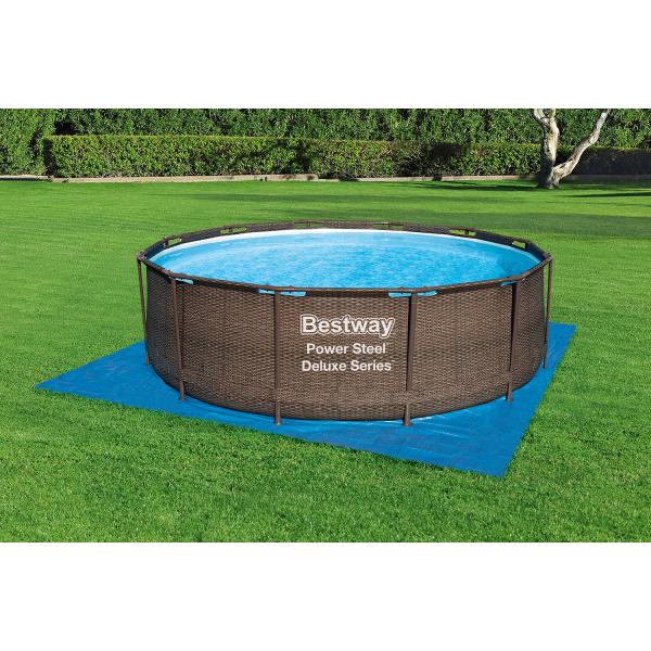 Podložka pod bazén o rozměrech 396 x 396 cm je přesně přizpůsobena potřebám nadzemních bazénů s průměrem až do O 366 cm. Naše PE podložka poskytuje spolehlivou ochranu proti propíchnutí, poškrábání a jiným poškozením. Tím nejen prodloužíte životnost svého bazénu, ale zároveň ochráníte svůj trávník před nevzhlednými skvrnami. Vyrobena z kvalitního PE materiálu, tato podložka je nejen odolná, ale i mimořádně trvanlivá.