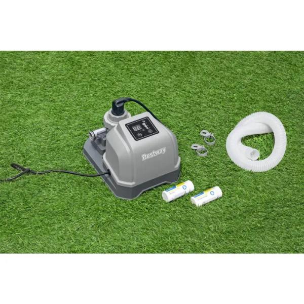Solinátor Bestway® Hydrogenic představuje moderní řešení péče o vodu v bazénu bez potřeby tradičního chlóru. Systém je navržen pro bazény do objemu 8 327 litrů a přeměnou soli na chlór zajišťuje křišťálově čistou vodu šetrnou k pokožce, očím i vlasům.