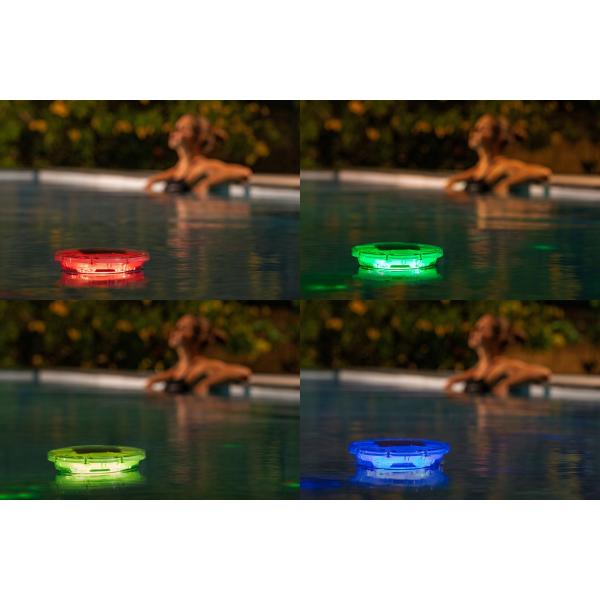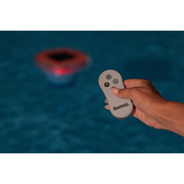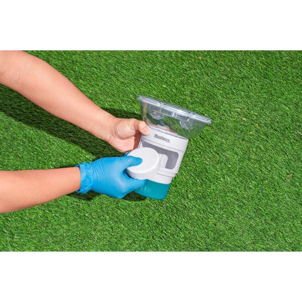 Dávkovač nabízí prostor až pro 3 bromové nebo chlórové tablety standardní velikosti (do 7,6 cm) a zajišťuje tak nepřetržitě čistou vodu. Při setmění se díky integrovanému světelnému senzoru automaticky zapnou LED diody s měnícími se barvami. Pomocí dětského ovládání si pohodlně vyberete z 9 barevných možností (4 pevné barvy a 5 barevných kombinací) a 3 světelných režimů. Výkonná solární NI-MH baterie zajišťuje svícení až 8 hodin.