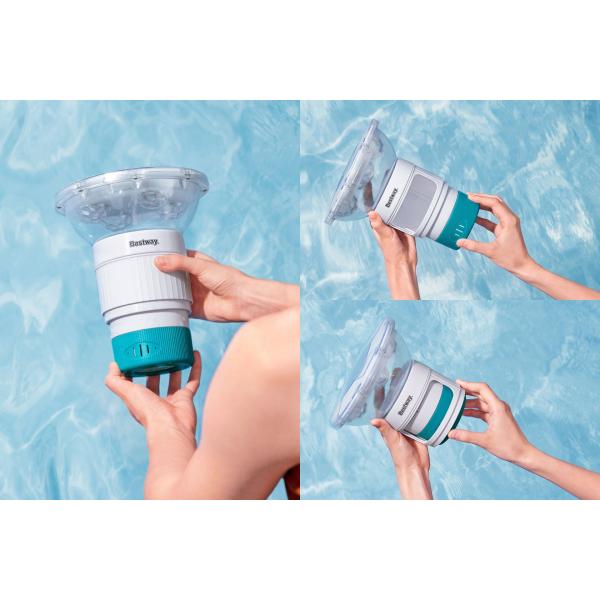 Bestway® SolarGlow™ je inovativní solární dávkovací plovák 2-v-1, který přes den spolehlivě dávkuje bazénovou chemii a v noci promění váš bazén na atmosférické LED svítidlo. Tento inteligentní doplněk kombinuje efektivní údržbu vody s kouzelnou světelnou atmosférou – bez kabelů a bez složité instalace.